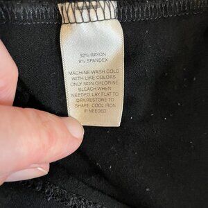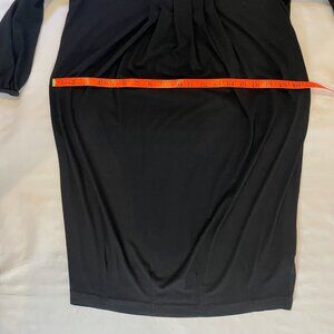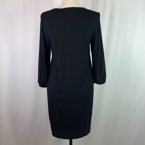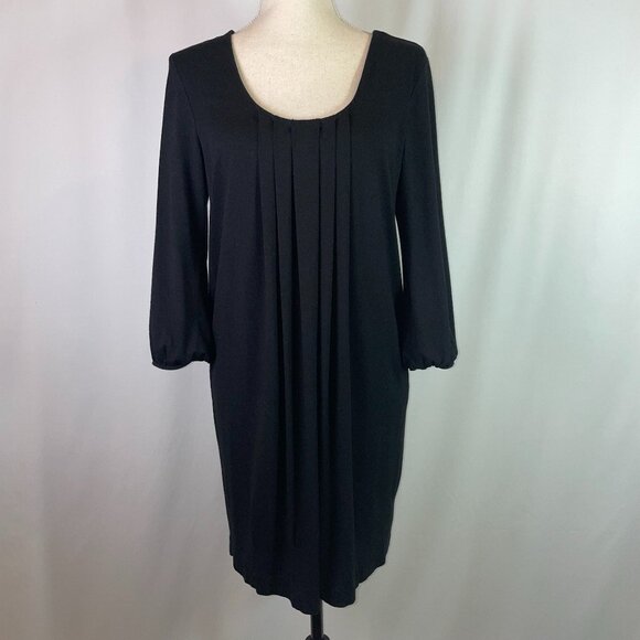 WHBM Pleated Bubble Hem Dress Black Jersey Knit 3/4 Sleeves Scoop Neck Size M