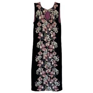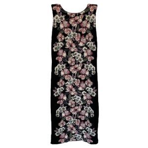 WHBM purple floral print reversible sleeveless sheath midi dress.