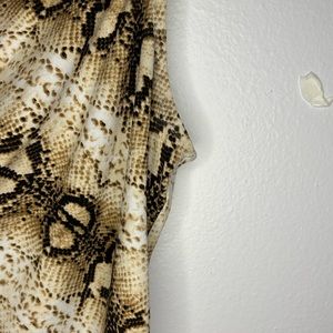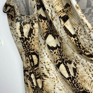 Sexy python print cowl neck tank. Very flattering and slimming on the body. Slight wear noted under the arms with loose strings, no holes or tears.