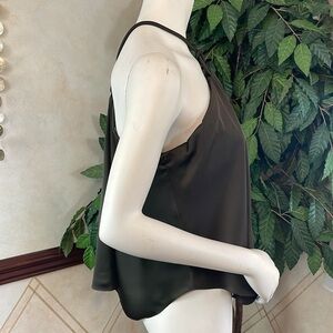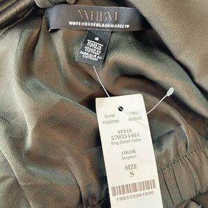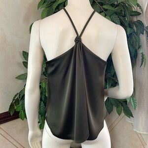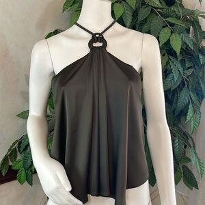WHBM Top Features GORGEOUS Sergeant Green Fabric with Silky Feel ➖ large Ring at Neck Gives Classic Halter Top a Retro-Vibe ➖ Covered Rope Neck Straps ➖ Handkerchief Hem ➖ Sleeveless ➖ Built-In Shelf Bra ➖ Armpit to Armpit 18” … Length 25” from Shoulder