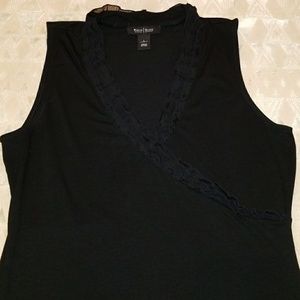 This stylish & slimming sleeveless tunic is great for work or going out! Dress it up or down depending on the occasion. Throw on a blazer, cardigan, or short sexy jacket! A blend of rayon, polyester, & spandex gives it that super soft flexible feel. A ruffled trim to accentuate the neckline & crossover add to the style of this top.