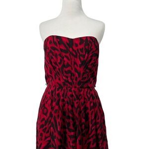 WHBM Red Black Animal Leopard Print Strapless Dress