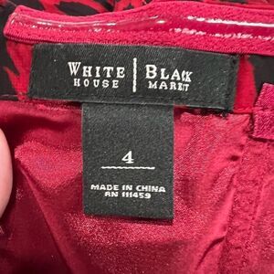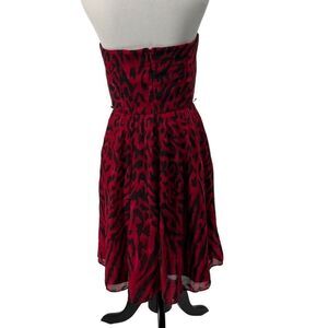 WHBM Red Black Animal Print Strapless Dress. Size 4 with measurements in the pictures. Gently used condition with no rips or stains.