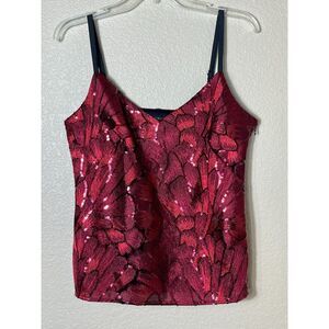 WHBM Red Maroon Black Sequin Cami Tank Fancy Size 8 Chic Date Career Party