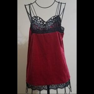 WHBM Red Velvet Black Lace Trim Cami Size Small