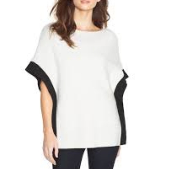 GUC White House Black Market white black ribbed poncho size L in good condition