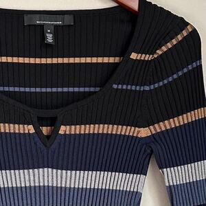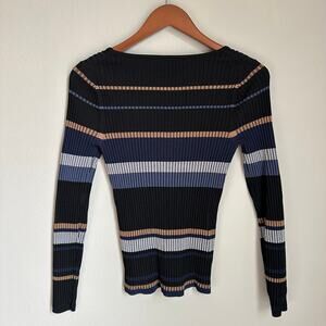 WHBM Ribbed Keyhole Stripe Sweater Long Sleeve Pullover Preppy Office Chic