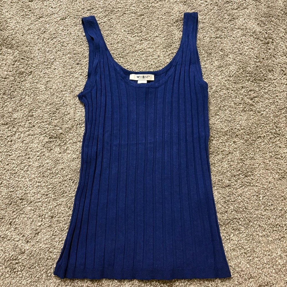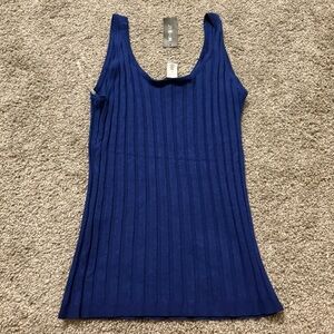 WHBM sleeveless ribbed knit tank in a vibrant royal blue. Scoop neckline and fitted silhouette. Soft stretch fabric for easy wear.