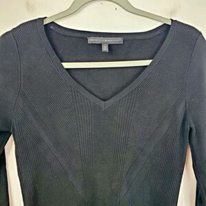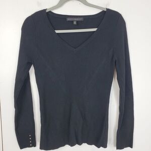 WHBM Ribbed Sweater Lightweight Knit High V Neck Minimalist Capsule Womens S