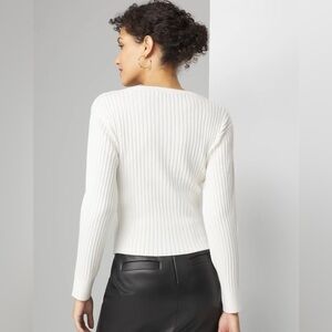 WHBM Ribbed Sweetheart Neck Pullover Sweater White size Large