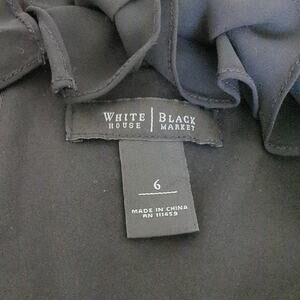 White House Black market women's dress size 6 sheath dress lines ruffle neckline elegant sophisticated cap sleeve flattering fits length 37 flat across under arm 18