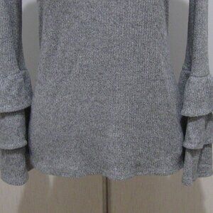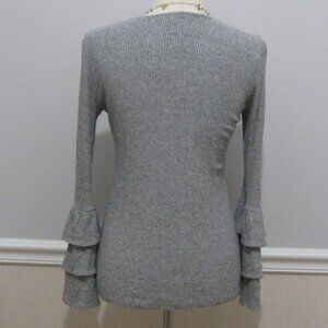 WHBM Ruffled Cuff Long Sleeve Stretch Knit Top sz XS Gray