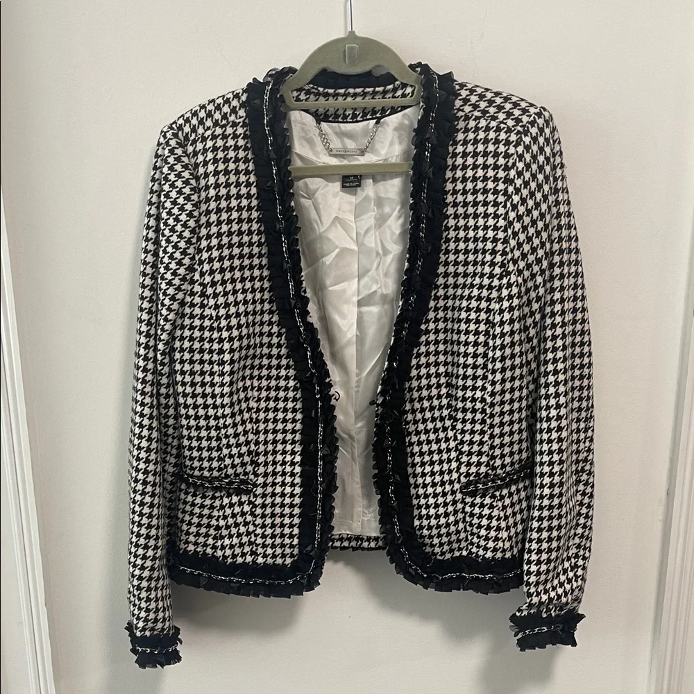 WHBM Ruffled Houndstooth Jacket