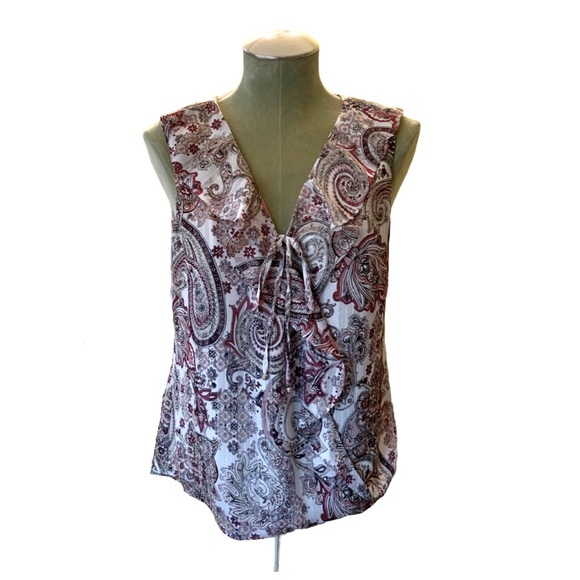 White House Black Market ruffled tank - shiny silver thread detail - crisscross tie front - size 6 - excellent used condition