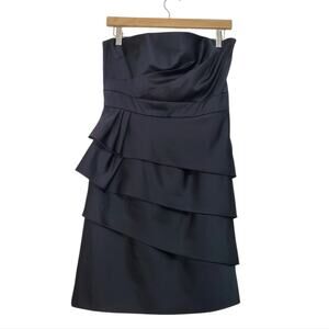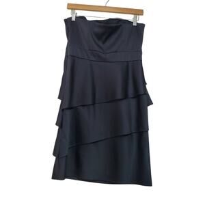 WHBM | Satin Sheen Asymmetrical Layered Strapless Side Flare Pencil Dress