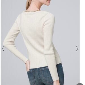 WHBM Scoop Neck Chain Detail Long Sleeve Ribbed Knit Sweater Oatmeal - Size Small - EUC