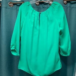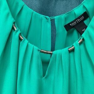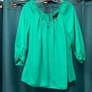 WHBM Sea Green Silk Blouse w/ Silver Bead Neckline Size Medium