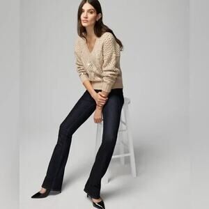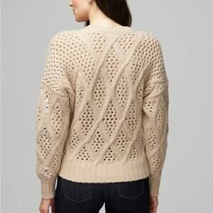 Add a touch of winter sparkle to your wardrobe with this White House Black Market embellished cable knit sweater. Featuring a soft open-knit diamond pattern with tonal sequins scattered throughout, this sweater blends cozy texture with subtle glam.