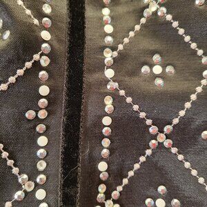 @pattygiek Thank you for your interest! Here goes...from top to bottom (front) 15" (back) 12 1/2", waist 14" and armpit to armpit 17" (one sided). Hope that helps...yes, very pretty and dazzling!