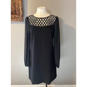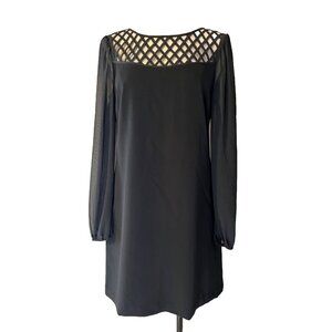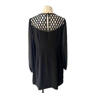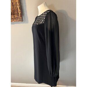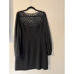 WHBM Shift Dress 10 Black Career Church Washable 3/4 Long Sleeve Lattice Trim