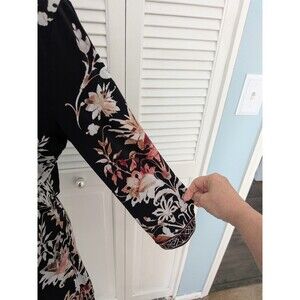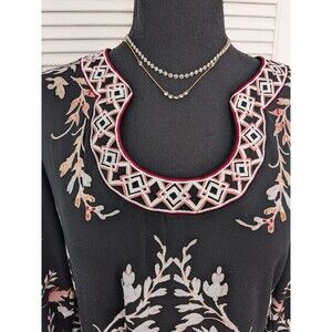 WHBM Shift Dress/Tunic Women M Multi Black 3/4 Aztec Floral Stretch Embroidery