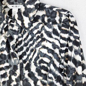 WHBM Shirt Womens Medium Black White Zebra Print Button Up Long Sleeve Blouse