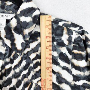 WHBM Shirt Womens Medium Black White Zebra Print Button Up Long Sleeve Blouse. In very good pre-owned condition. No flaws noted.