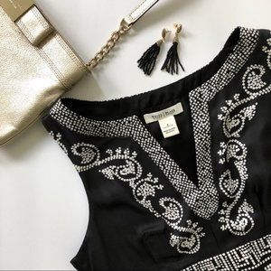 WHBM Silk Print A-Line Dress Sleeveless Black White Sz 4