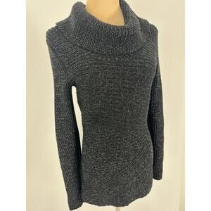 WHBM Size Small Wool Cotton Blend Cowl Neck Knit Sweater Black Silver Glitter