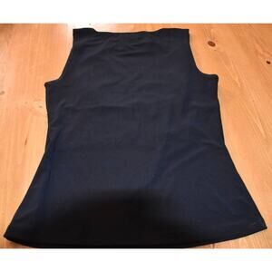Details: Black Sleeveless Top, Scoop Neck line with Stretchy Lace Underlay. Last Photo is of the garment inside out to show Lace Underlay detail from the inside.