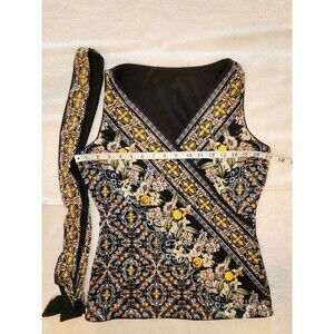 WHBM Sleeveless Reversible Floral Yellow Black Faux Wrap Top Small