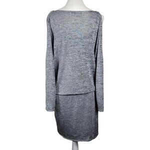 WHBM Small Cold Shoulder Silver Jersey Dress Beaded Shoulders Blouson Heathered