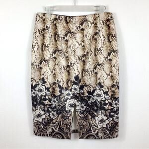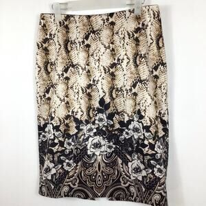 WHBM Straight Pencil Skirt Floral Animal Print Black Tan size 4