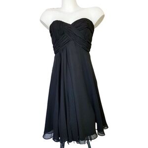 White House Black Market lovely formal strapless chiffon dress. Ruching along the top & fit flare flowy fit skirt .sweetheart neckline. Back zip. 100% Polyester. Lined.