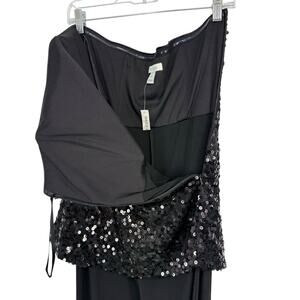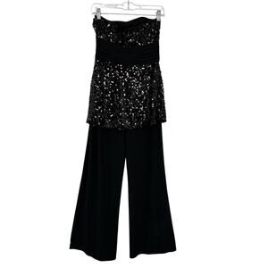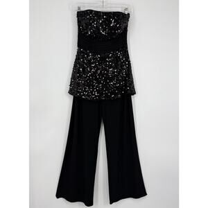 WHBM Strapless Sequin Jumpsuit Size 6 Black Knit Wide Leg Formal Party NWT