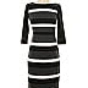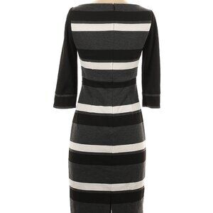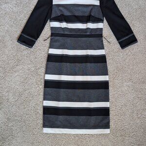 Black, white and gray dress from WHITE HOUSE BLACK MARKET. Lined. Hidden back zip with hook-and-eye closure.