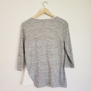 White and black striped asymmetrical sweater in great condition without flaws. Work attire or casual top. Great layering piece or to be worn alone.