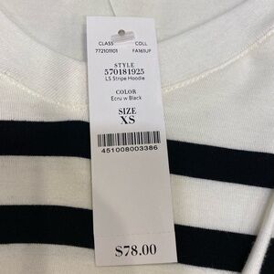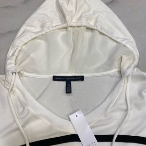 WHBM Striped Hoodie Size XS Ivory Black Stripes Long Sleeve NWT