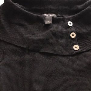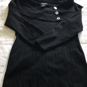 Beautiful black 3/4 sleeve off the shoulder lightweight sweater or blouse with three silver buttons on front. Very flattering on and can wear with anything to dress it up or down. Gently used from a smoke and pet free home.