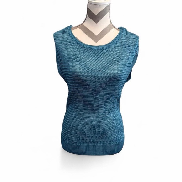Blue White House Black Market semi-sheer knit sweater shell perfect for layering.
