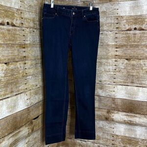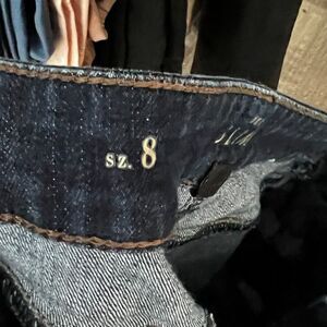 WHITE HOUSE BLACK MARKET THE SLIM JEANS. WOMEN'S SIZE 8. PROVIDES EXTRA STRETCH. JEANS DO HAVE A SNAG ON THE BACK POCKET AND NEAR UPPER BACK LEG. FIVE POCKETS. ZIPPER FLY BUTTON CLOSURE. SEE PICS FOR MATERIAL TAG. OFFERS WELCOME
