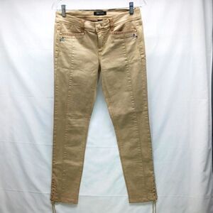 WHBM Tan Skinny Leg 6R Feel Beautiful Stretch Denim Pant XX Ankle Tie. Embellished buttons and pockets.