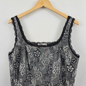 WHBM Tank Top XL Black Lace Silver Gray Floral Dressy Holiday Whimsigoth Grunge