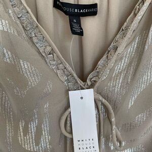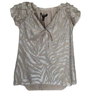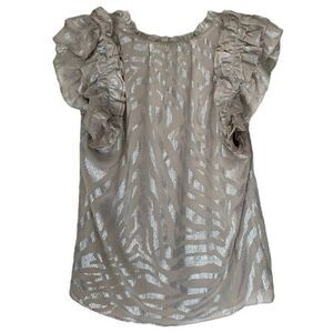 WHBM Taupe Metallic Zebra Print Ruffle Sleeve Chiffon V-Neck Top NWT Size Small
