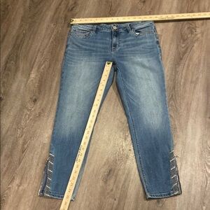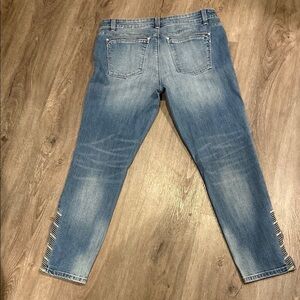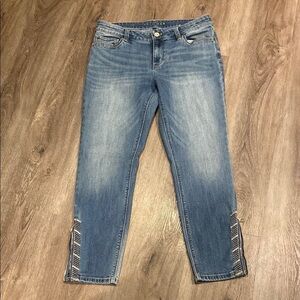 WHBM The Skimmer Jeans Zipper Ankle embroidered Light Wash Subtle Metallic Stitching, see photos. 10P NWT