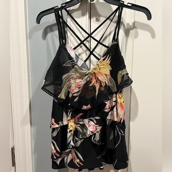 Beautiful spaghetti strap layered top from WHBM. Straps criss cross in back. Length is 24”.