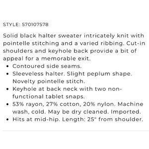 Made of rayon/cotton/nylon. Machine washable. Pullover style with faux silvertone buttons at the back of the neck. Ideal to layer.