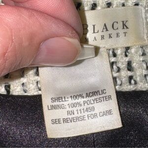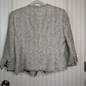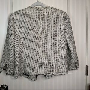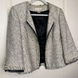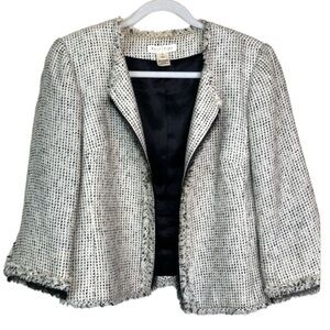 WHBM Tweed Fringe Jacket Black White 3/4 Sleeves Sz 12