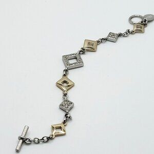 WHBM Two Tone Silver & Gold Chain Toggle Rhinestone Bracelet 7.5"