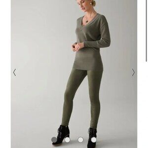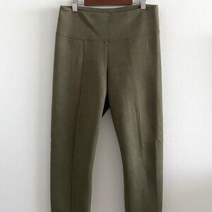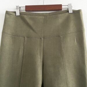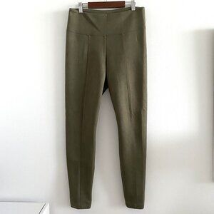 WHBM Ultra Suede Runway Leggings in size 10. Color is Forever Olive. "Designed with a wide waistband and feel-good stretch for that extra comfort. Crafted in a sumptuous faux-suede fabric that washes like a dream." 96% polyester, 4% elastane. Excellent pre-owned condition.